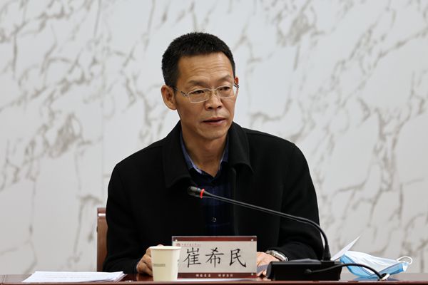 崔希民在会上传达了教育部党史学习教育高校第四巡回指导组工作碰头会议精神,碰头会明确了巡回指导组的职责、三个阶段的主要任务、文字材料准备要求等,提出了党史学习教育要关注的重点内容。