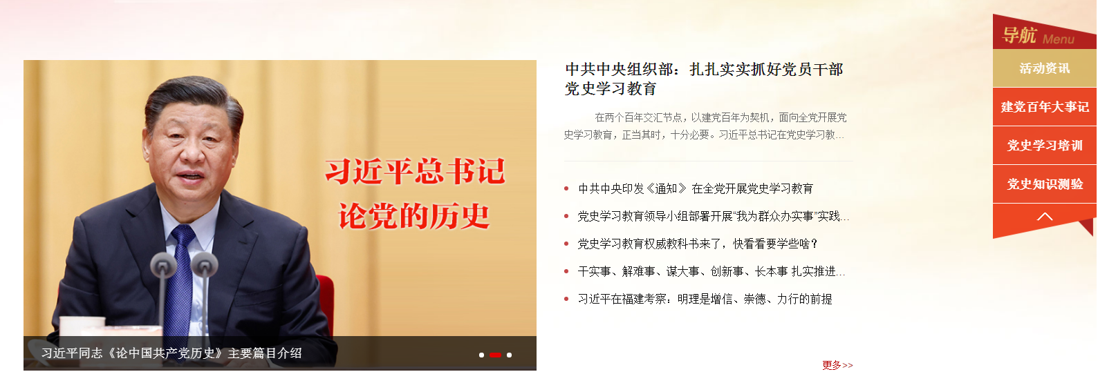 其中,“活动资讯”栏目主要展示中央及上级有关部门关于党史学习教育相关精神文件、相关主流媒体宣传报道及评论员文章等内容。