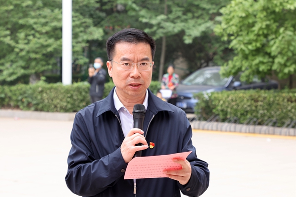 本网讯 5月14日上午,学工团委联合党支部在学院路校区民族楼南广场开展“重温入党誓词 坚定理想信念”主题党日活动。校党委副书记王忠强出席活动,活动由支部书记安宇主持。