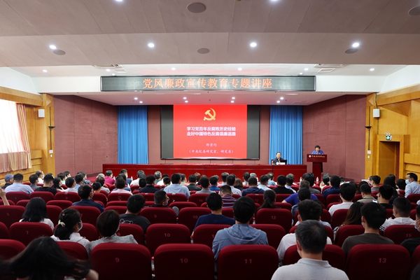 邵景均同志以《学习党百年反腐败历史经验,走好中国特色反腐倡廉道路》为题,从中国共产党的百年反腐主要历程和基本经验、中国特色反腐倡廉道路的形成发展和主要特点、新时代一体推进不敢腐不能腐不想腐的反腐败斗争策略、党员领导干部廉洁从政等四个方面对中国共产党反腐倡廉史进行了深入浅出地讲解。