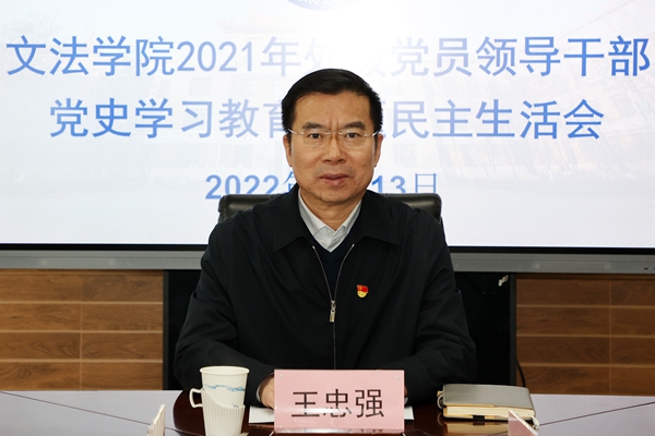 王忠强全程听取了班子成员发言,并对本次民主生活会进行了点评。王忠强对学院领导班子近年来的工作和成绩给予了充分肯定,希望学院班子认真听取和落实督导意见,对提出的问题扎实整改,确保民主生活会取得实效。他对学院班子提出了五点要求:一是要强化理论武装,学深悟透习近平新时代中国特色社会主义思想,深入学习贯彻习近平总书记关于教育的重要论述,把党史学习教育与学院事业发展有机结合;二是要认真履职尽责,加强政治建设,履行好管党治党、办学治院的主体责任,履行好“第一责任人”责任、一岗双责,切实推动全面从严治党向纵深发展;三是要优化师资队伍,凝心聚力抓好学科建设,落实立德树人根本任务,提升育人实效,办好让人民满意的教育;四是要勇于开拓创新,科学谋划,解决师生实际困难,激发师生创新活力,推动学院高质量发展;五是要落实好寒假期间学校疫情防控要求,加强师生管理,全面掌握师生动态,重视师生心理健康工作,确保师生健康安全。