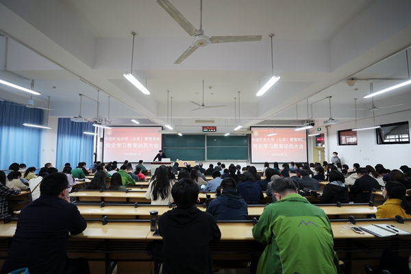 本网讯 4月1日下午,管理学院在教学楼106教室召开党史学习教育动员大会,按照校党委的统一部署和《中国矿业大学(北京)开展党史学习教育工作方案》有关精神,对管理学院开展党史学习教育进行动员部署。学校党史学习教育第一巡回指导组副组长、党委组织部部长谭凯,联络员李光富出席会议。学院全体教职工和学生党支部委员共143人参加了会议。管理学院党委书记杨庆舟做动员报告,院党委副书记李邦三主持会议。