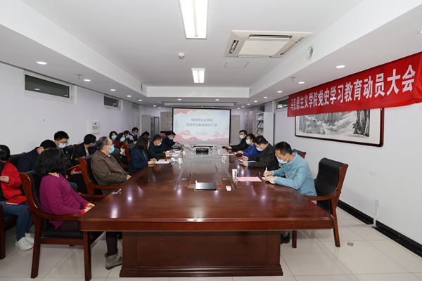 本网讯 3月29日下午,按照校党委的统一部署,马克思主义学院在逸夫楼1217召开党史学习教育动员大会,深入学习贯彻习近平总书记在党史学习教育动员大会上的重要讲话精神,对学院开展党史学习教育进行动员部署。校党委副书记、纪委书记董晞,校党史学习教育第一巡回指导组组长、原副校长范迅,校党史学习教育第一巡回指导组副组长、党委组织部部长谭凯,校党史学习教育第一巡回指导组联络员、党委组织部干部科科长李光富出席会议并指导。学院领导班子成员、全体教师和学生党支部书记参加会议。马克思主义学院院长李妍主持会议。