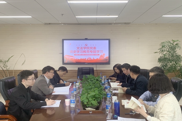 院党委书记杨洪兵作了题为《学好党史,为党育人,为国育才》的领学发言。他围绕习近平同志《论中国共产党历史》,从党史学习的重要性、主要学习内容与目标、学党史对于教师的要求、学党史对于学生的教育等方面进行阐述。他指出,学习党史对于大学的人才培养工作具有非常重要的意义,文法学院应该以本次学习为契机,结合学科特点,落实立德树人的根本任务,坚持为党育人、为国育才,培养德智体美劳全面发展的社会主义建设者和接班人,坚持以人民为中心发展教育,努力办好人民满意的教育,为建设高质量教育体系、教育成果贡献力量,为全面建设社会主义现代化国家、实现伟大复兴中国梦而不懈奋斗。