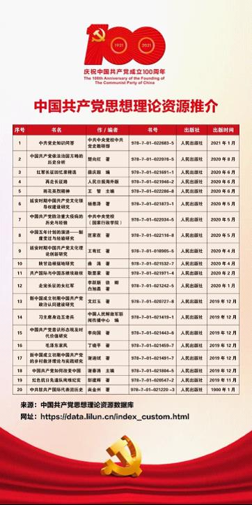本网讯 图书馆秉承认真开展党史学习教育,踏实践行“我为师生办实事”的宗旨,立足本职工作,积极开拓资源优势,融合多渠道,采购了包括《毛泽东传》、《刘少奇传》、《邓小平文选》等在内的68册党史类纸质图书,并从电子图书资源中精心挑选出20册党史类电子图书,所有党史类图书均经学校有关部门进行专业把关,确保图书的权威性和正确性,以实际行动助力我校党史学习教育深入开展。