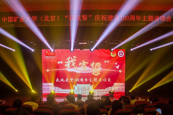 能源与矿业学院诗朗诵《永远跟党走》拉开了整场诗颂会的大幕,同学们饱含深情地朗诵歌颂了在党的正确领导下全国人民取得了举世瞩目的成就;应急管理与安全工程学院《坎坷百年路,党魂润华夏》带领观众穿越时空,见证了百年来华夏儿女无畏艰难,携手并进,乘风破浪创辉煌的壮丽史诗;地球科学与测绘工程学院《千室之暗,一灯即明》号召新时代青年要做“灯的传承”,以进取为灯,扶摇而上万里;化学与环境工程学院的《青春向党,奋斗强国》、《太阳从红船升起》带领全场观众在青年们激昂的诵读声中,回顾建党百年的伟大历程,从“红船精神”中汲取前进的磅礴力量,踏上建设世界一流能源科技大学的坚定征程;机电与信息工程学院《重温红色经典,回顾百年党史》通过讲述党的百年历程,激发了所有人的爱国热情;管理学院节目《青年思潮,赓续盛世》采取诗朗诵与合唱相结合的舞台形式,忆往昔峥嵘岁月,看今朝砥砺前行,展未来任重道远;力学与建筑工程学院的《继往开来,百年征途》以满怀赤诚呐喊理想,以开拓进取歌颂青春;理学院的《不忘初心,砥砺奋进》生动描绘了中国共产党经历百年风雨沧桑,留下了“雄关漫道真如铁,而今迈步从头越”的奋斗足迹;文法学院的《筚缕斫尽,思党追忆》、《党旗飘飘》再现每个时期党的英雄儿女感人事迹,带领观众穿越时间的长河,从拼搏的岁月走向光辉的未来。节目尾声,带着所有的感动与温暖、热情与力量,诗颂会在马克思主义学院的诗朗诵《我是共产党员》中落下帷幕。